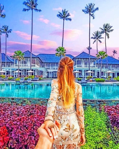 paint by numbers kit Lady Enjoying Santorini Greeces