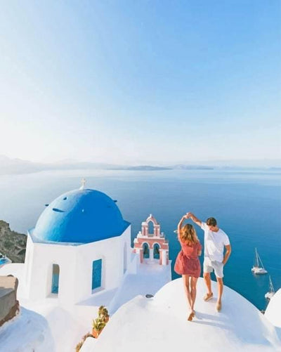 The "couple Santorini Greece" painting, part of our amazing travel collection features a couple dancing in the middle of the beautiful white buildings of Santorini and in the background the various hues of blue are visible. The vast blue sky and the Marine blue color of the sea meet at the horizon beautifully. The scenic beauty of this picture is so mesmerizing that you would want to pack your bags and travel to Greece. What if you can experience all of it at your home? For this, all you need is our painting by numbers kit.