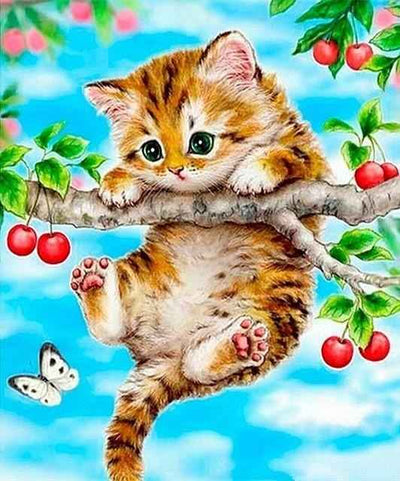 Cute Cats 22 is a part of our amazing cat collection. This mishievous cat has risked its life by trying to climb a tree in the greed of some red cherries but who can be mad at this adorable creature, we know we can't. Give yourself time to relax and engage yourself in this recreational activity, that is painting, in your break time instead of mindless social media browsing and finish this wonderful portrait of a cute cat caught in the act of it's mischievous behaviour. Stress and anxiety reduction is bound to happen as painting is a mindful activity. A high quality canvas, number based paint set, paint brushes along with a very easy to follow instruction manual, all of it, comes packed with the our handy paint by numbers kits. The portrait once finished makes for a perfect gift to an animal lover or it can also be hung on the walls of your house to give it a more natural vibe. For further guidance, you can also watch the tutorials on youtube that are made by professionals.
