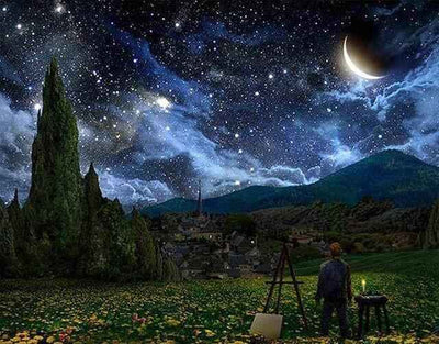 Under the Stars is a part of our amazing Nature Collection. The magnificent part of this painting is that the artist has probably painted himself, showing what he was doing when he wasn’t painting this masterpiece. He was gazing at the stellar sky. And suddenly, a thought struck his mind- he should paint this rare but beautiful scene out before it fades from his memory permanently. So here he is- painting it peacefully, until he realizes that his painting skills are not up to the mark. SO what does he do? He uses the fun and convenient Paint-by-numbers kits to add life to his paintings. Now all he has to do is to follow the numbers marked on his canvas, and then paint his way through them. So if you too can relate with this genius artist, then you wouldn’t waste any of your precious time and just grab this awesome tool for painting made only for creative people like you.